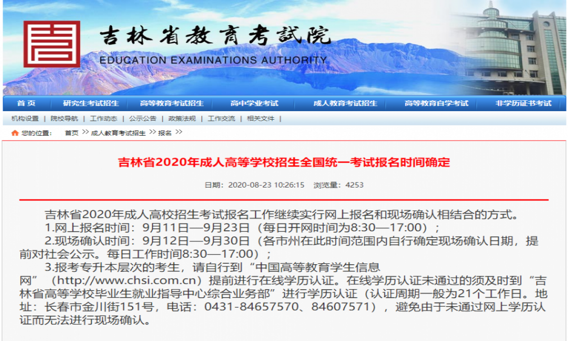 吉林省2020年成人高考时间已定!