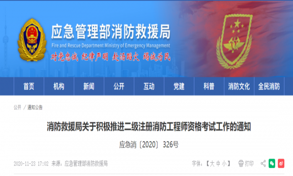 春天来了!消防救援局正式发布《关于积极推进二级注册消防工程师资格考试工作的通知》